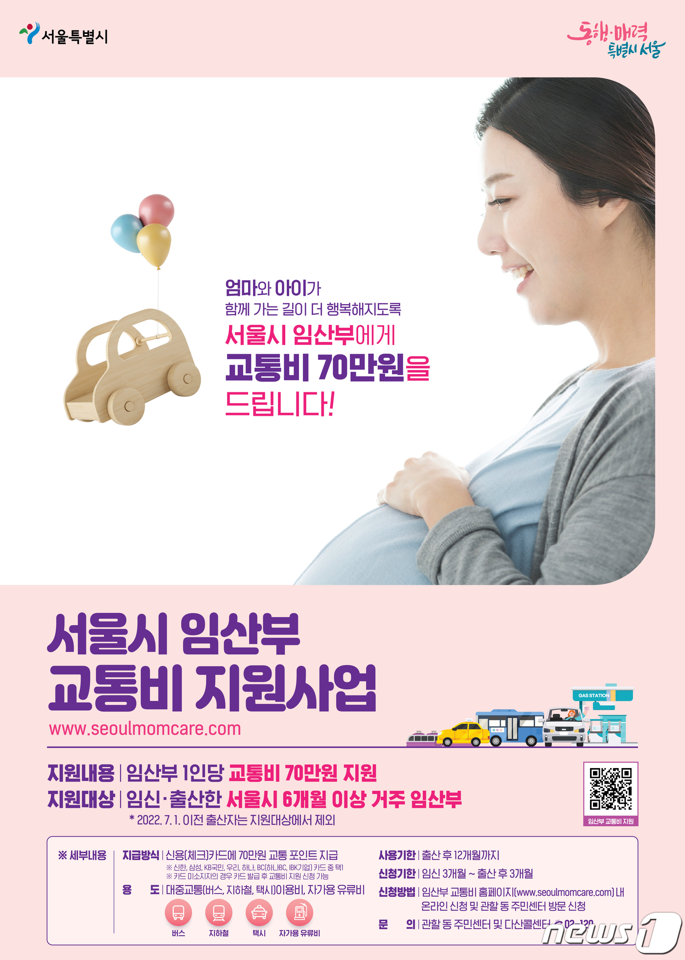 - 지원 금액: 임산부 1인당 70만 원의 교통 포인트 지급.