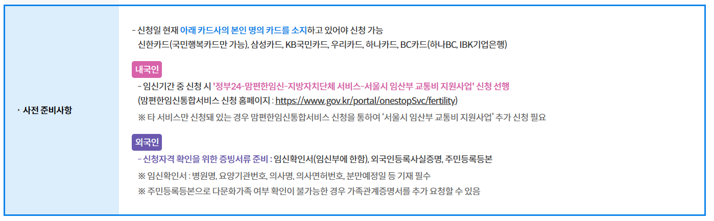 - 거주 요건: 신청일 기준 서울시에 거주하는 임산부.