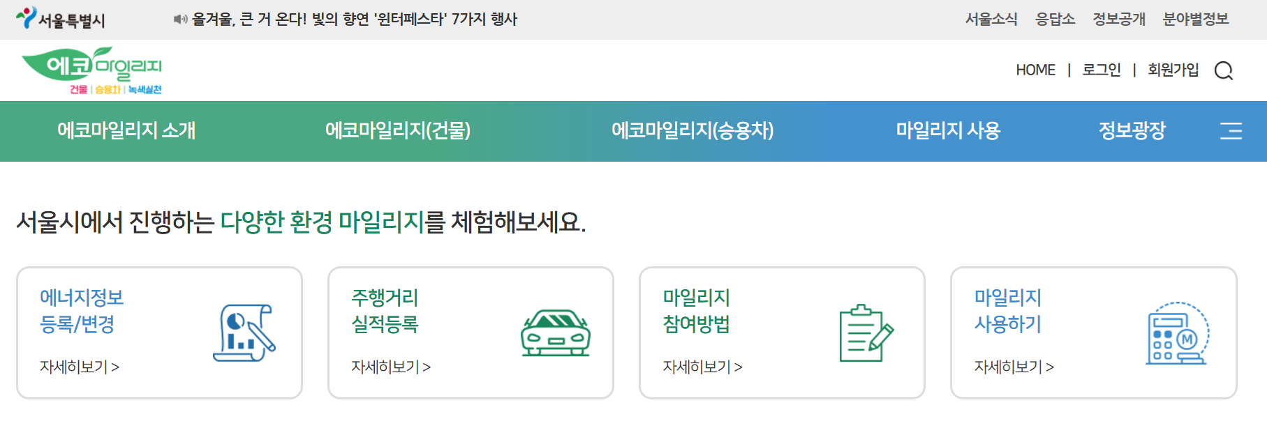 - 서울시 에코마일리지 홈페이지 접속