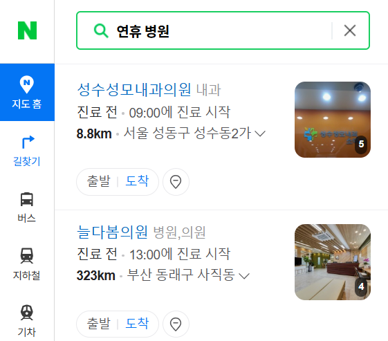 네이버, 다음 등 주요 포털 사이트에서 '명절 병원', '연휴 병원' 등으로 검색하면 상단에 응급의료포털 링크가 노출됩니다. 이를 통해 연휴 기간 동안 운영하는 병·의원과 약국 정보를 빠르게 확인할 수 있습니다.
