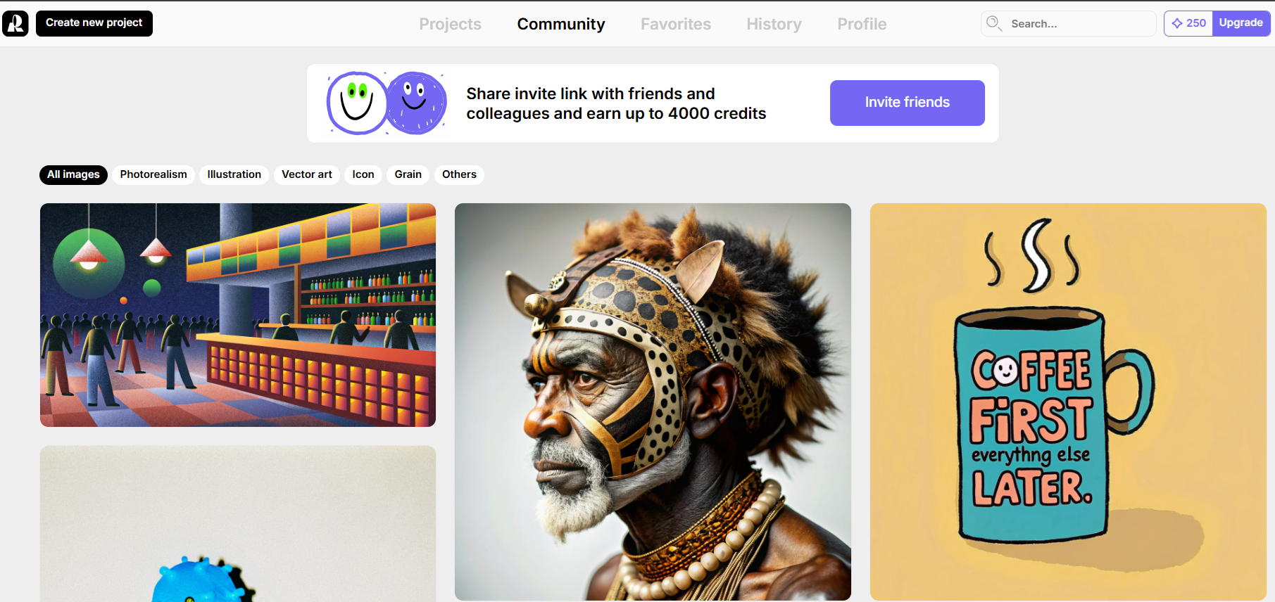 - 로그인 후 Recraft의 메인 대시보드에 접속됩니다. 여기서 프로젝트를 생성하고 관리할 수 있습니다.